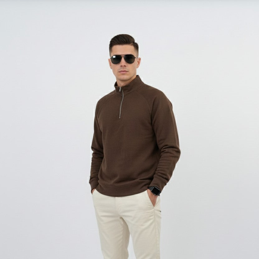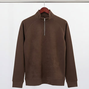 This sophisticated brown scuba pullover is a wardrobe asset. Layer it over a simple white crewneck tee and pair it with beige chinos for an elevated autumn look, or use it as a smart mid-layer over a collared shirt for a business casual setting.