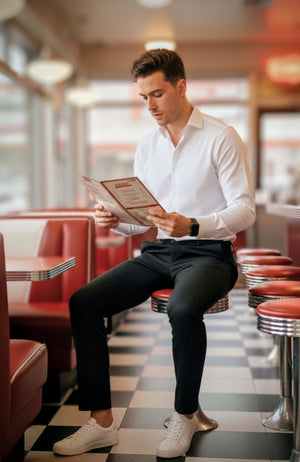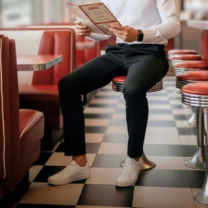 Pair these black smart fit chinos with one of your Scuba Pullovers for a sleek, modern look, or dress them up with a crisp button-down shirt and blazer. They are engineered to be the most versatile and comfortable trousers you own.