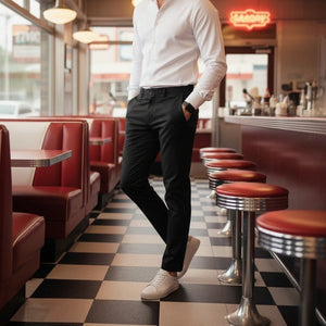 The foundation of a versatile wardrobe. Our Men's Smart Fit Cotton Chinos in deep, essential Black strike the perfect balance between tailored style and everyday ease. Constructed from premium, breathable cotton, these chinos offer a clean, streamlined look without sacrificing comfort or movement. They are the ideal choice for business casual settings, elevated weekend wear, and everything in between.