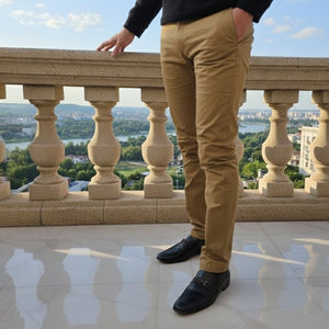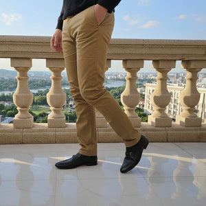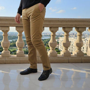 Introduce a refined, earthy tone to your rotation with our Men's Smart Fit Cotton Chinos in rich Camel. This classic hue provides effortless versatility, pairing beautifully with both light and dark tops. Crafted from premium, breathable cotton, these chinos deliver the structure of a trouser with the comfort of your favorite everyday pant.